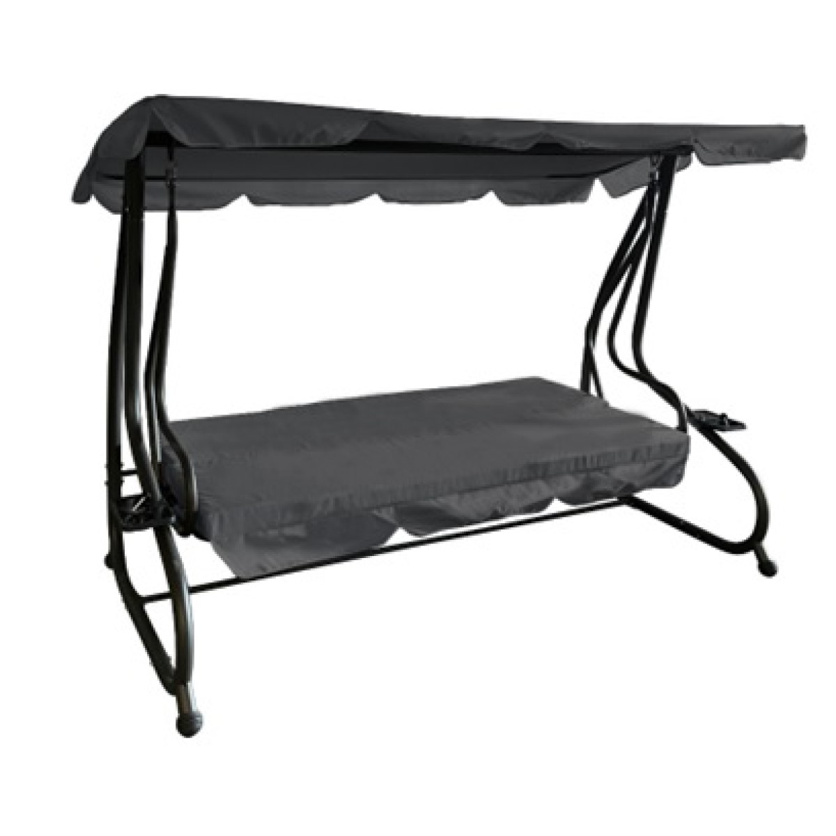 METAL SWING-BED GREY- CHARCOAL GREY FRAME -REINFORCED-4 SEATS-DIMENSIONS:L230xD120xH164cm- ONE PIECE TUBE FOR THE CANOPY-SEAT-BACK:600Dx300D OXFORD PVC COATING- COVER:180gr – TUBE:Γ48mm/ 32mm /28mm/25mm/16mm-CUSHION:160gr -CUSHION DIMENSIONS :194x50cm POLYESTER- WITH UV PROTECTION AND WITHDOUBLE TEETH MECHANISM-CARTON SIZE:230x57x30cm-WEIGHT: 47,00 Kg-GROSS WEIGHT: 51,00 Kg-P/C:1-