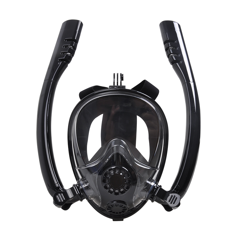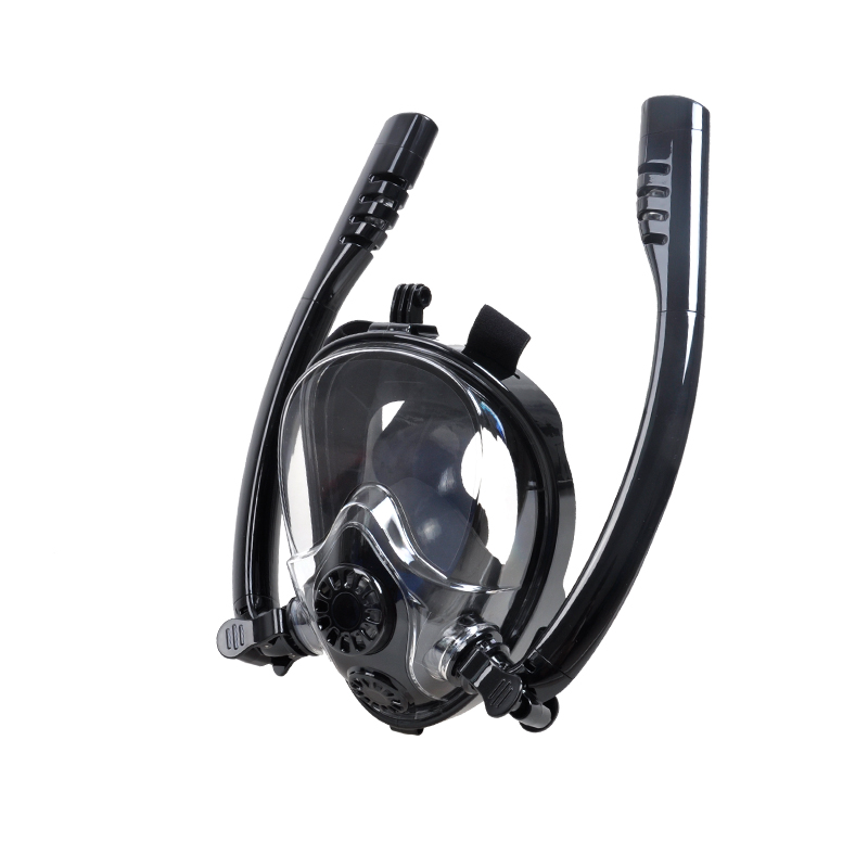 fortis FULL FACE SILICONE MASK BLACK WITH DOUBLE SNORKEL-OPTICS 180o – DURABLE ANTI GLARE LENS-ADJUSTABLE SOFT STRAP – DOES NOT ALLOW WATER TO ENTER –