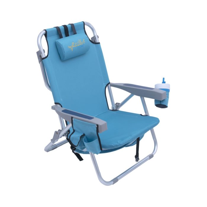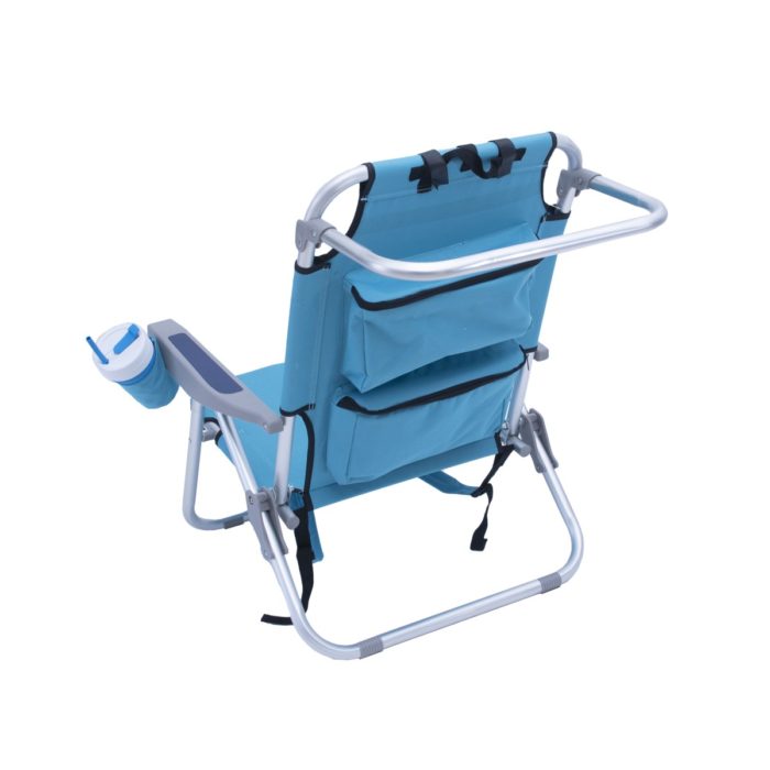 myResort ALUMINIUM BEACH ARMCHAIR LIGHT BLUE 600D POLYSTER -DIMENSIONS: W62*D71*H30/77/104cm cm -Γ24mm -5 POSITIONS-WITH HEAD PILLOW-2 POCKETS AT THE ARM-CUPHOLDER-1 COOLER BAG & 1 POCKET AT THE BACK-CARRY STRAPS-CARTON SIZE:76x63x33cm-WEIGHT:3580gr-P/C:4-