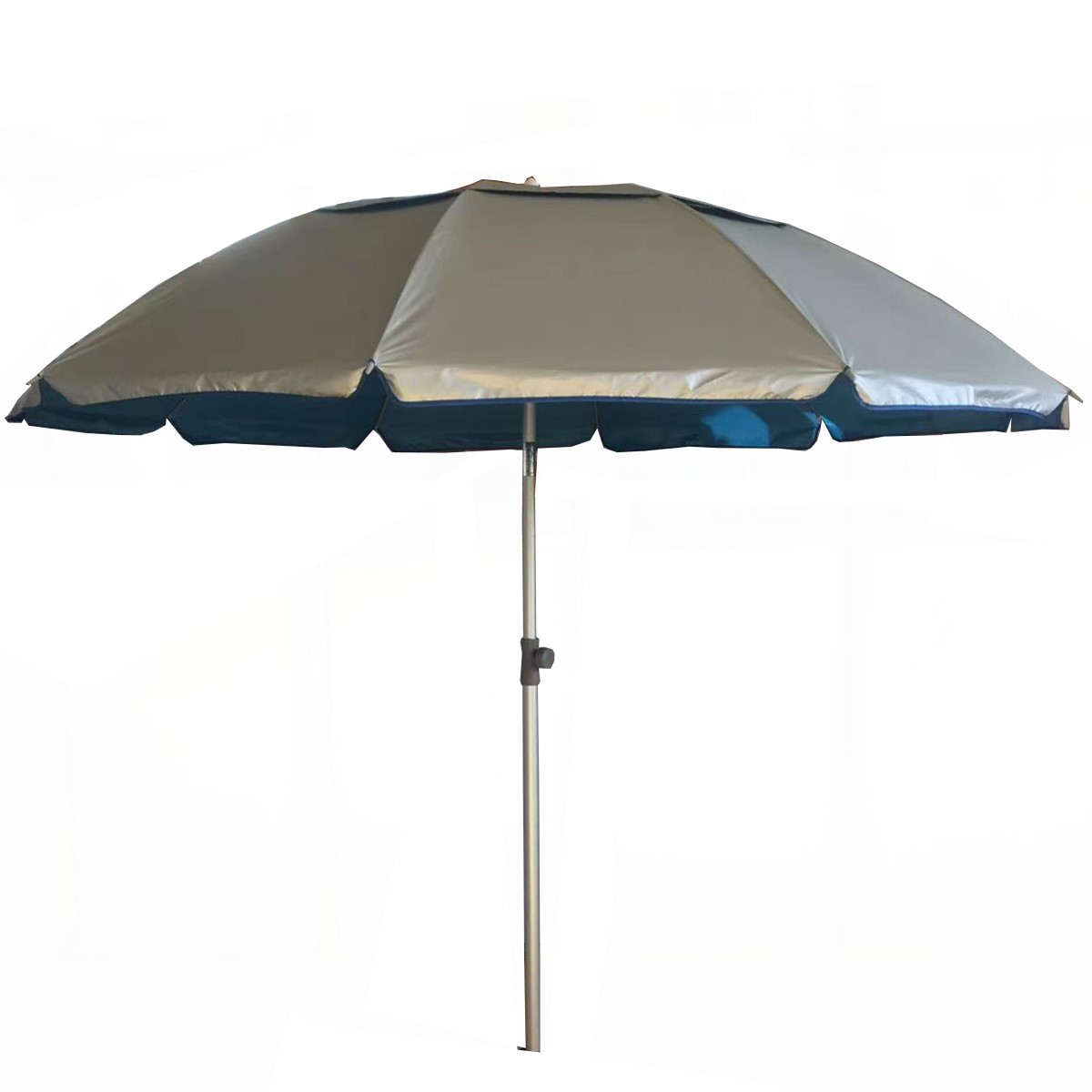 BEACH-PORCH-GARDEN UMBRELLA LIGHT BLUE 2,20m-POLE: ALUMINIUM 28/32mm-RIBS:FIBERGLASS 10x6mm-FABRIC:190T POLYESTER WITH SILVER COATING OUTSIDE- UV50+&WATER PROOF-FLAPS: 7cm-WITH TILT-WITH BIG WIND VENT AND MEASH INSIDE-OPEN CLIP : DELUXE-WITH CARRY BAG-WEIGHT:1710gr- CARTON SIZE: 129x17x16cm-P/C:4-