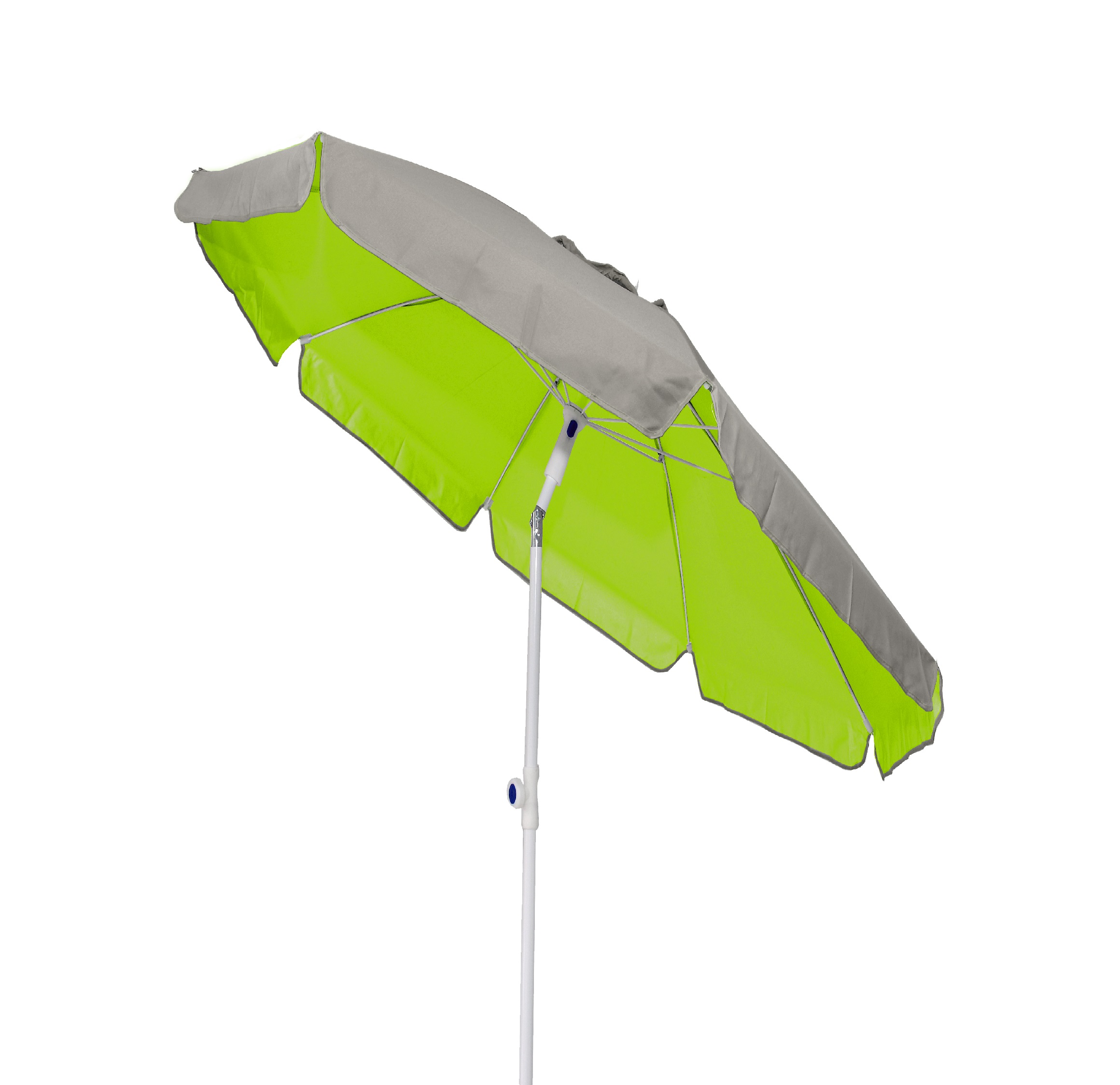BEACH-PORCH-GARDEN UMBRELLA LIGHT GREEN WITH SILVER COATING OUTSIDE 2m -POLE: METAL 22/25mm x0,6mm- SPOKES:8 PCs FIBERGLASS 6mm- FABRIC:POLYESTER 160gr- FLAPS:10cm -WITH RINGS FOR ANTIRIDES-TILT: WITH METAL RING -OPEN CLIP : DELUXE -CARRY BAG: POLYESTER -P/C:10-WEIGHT:1795gr-