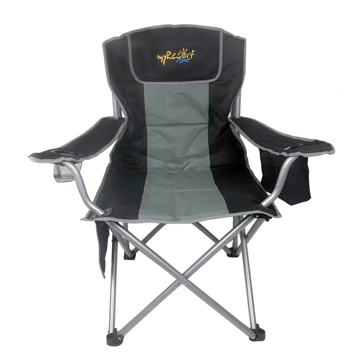 myResort FOLDABLE METAL ARMCHAIR POLYESTER 600D GRAY-BLACK WITH -COOLER BAG-GLASS HOLDER -MULTIPLE CASES-CELL PHONE POCKET AND CARRY BAG – DIMENSIONS:W59xD58xH100cm- TUBE:ΓΈ 21mm-WEIGHT TOLERANCE:120 Kg-WEIGHT:4000gr-CARTON SIZE:98x93x39cm-P/C:4-