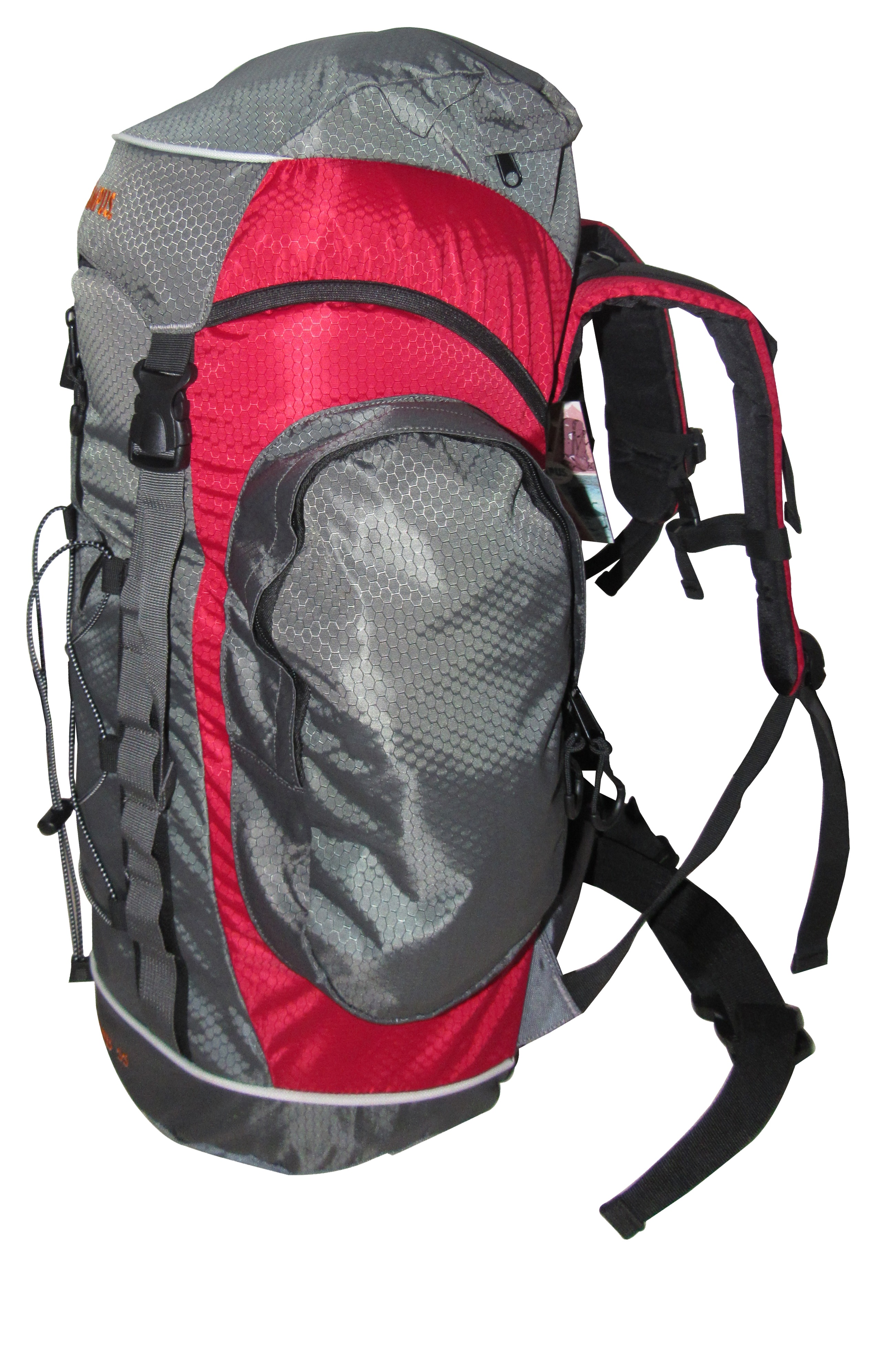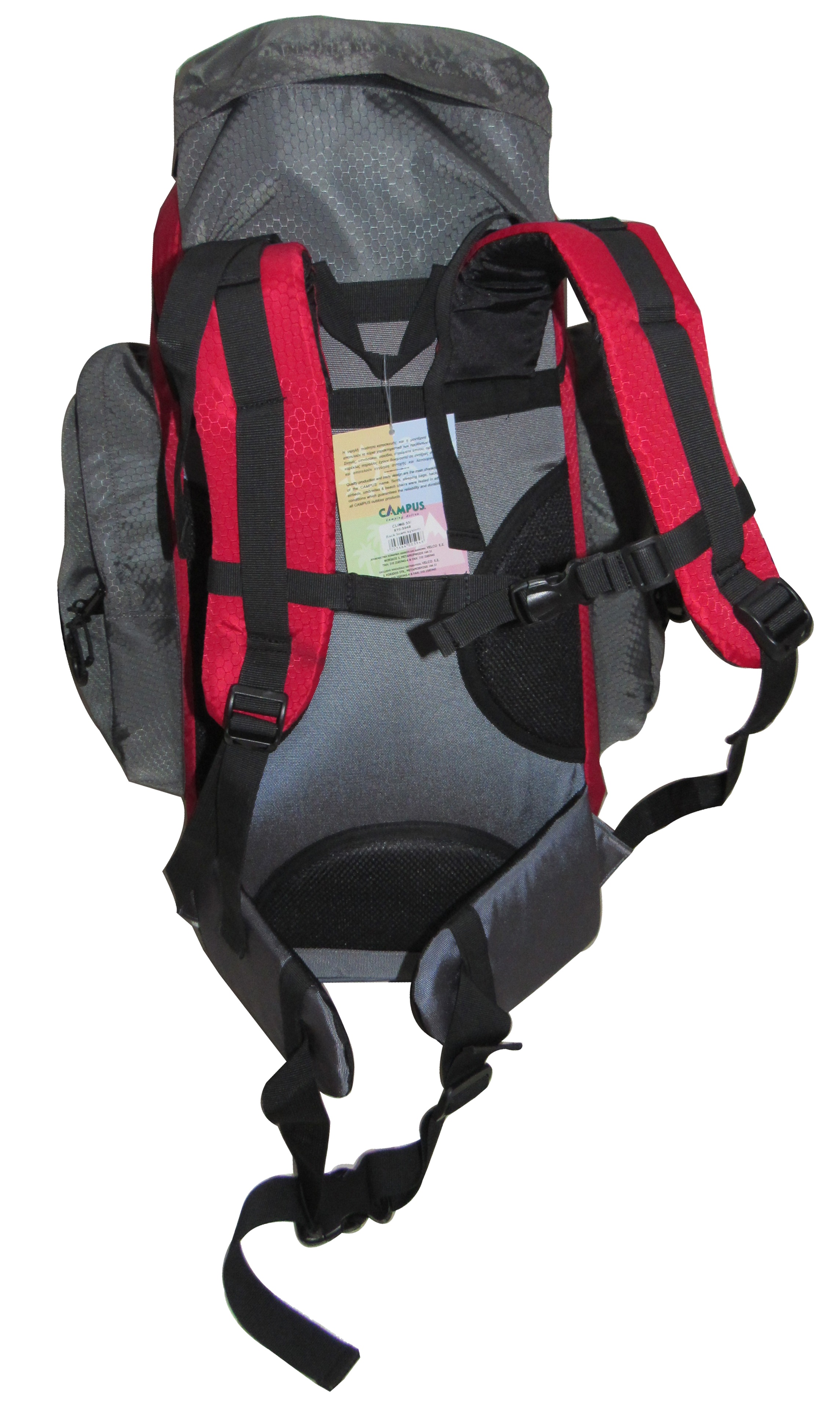 CAMPUS BACK PACK CLIMB 55 RED-GRAY- 55 Lt. -POLYESTER 600D- ADJUSTABLE STRAPS-ANATOMIC BACK-SIDE POCKETS-CENTRAL WATERPROOF ZIPPER 26cm-STRAPS FOR BATON-CLOSED PIECE DIMENSIONS: 58x39cm-WEIGHT: 1060gr-P/C:10-